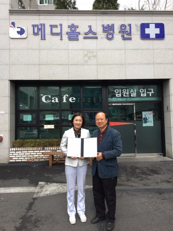 의료법인 운천의료재단과 선한사마리아인 병원선교회는 후원 약정식을 갖고 메디홀스병원의 환자들에게 휴식과 요양을 후원하는 협정을 하였다. .