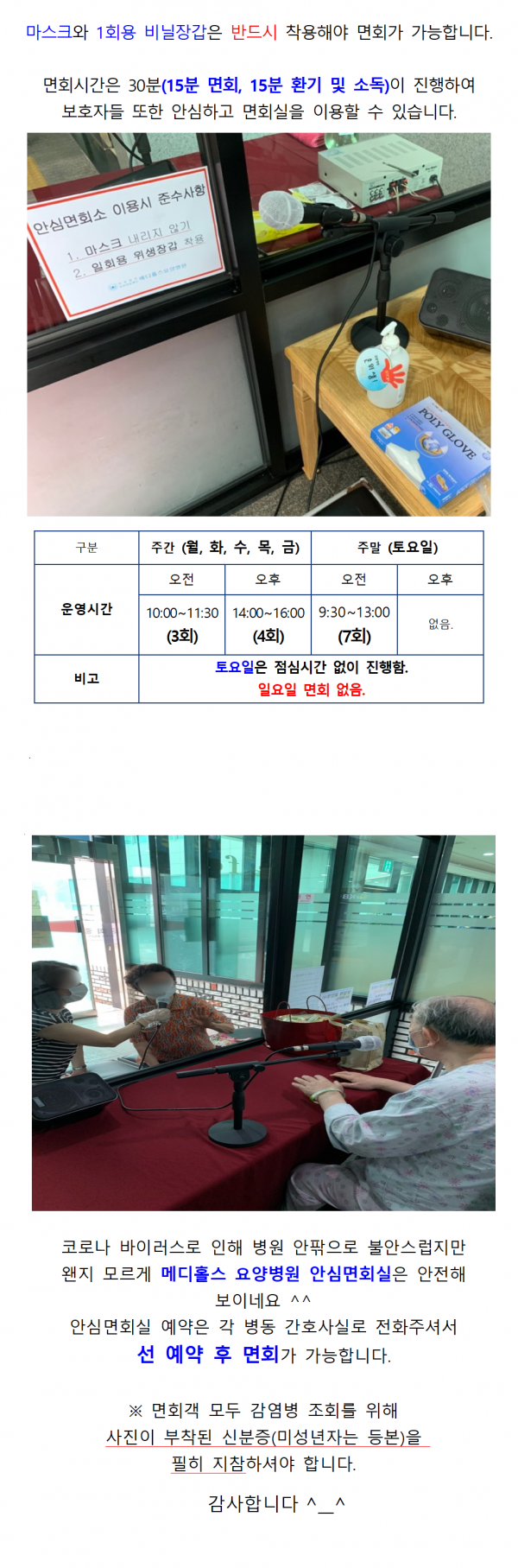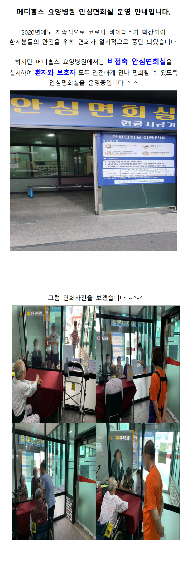 2020년 메디홀스 안심면회실 이용안내 입니다 페이지 정보 작성자 메디홀스 작성일20-07-21 12:20 조회2,998회 댓글0건 관련링크 이전글 다음글 목록 본문 _ 댓글목록 등록된 댓글이 없습니다. 이전글 다음글 목록