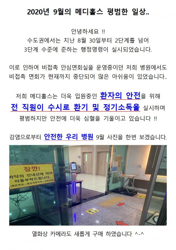 2020년 9월 메디홀스의 평범한 일상.. 페이지 정보 작성자 메디홀스 작성일20-09-11 17:57 조회2,723회 댓글0건 관련링크 이전글 다음글 목록 본문 - 댓글목록 등록된 댓글이 없습니다. 이전글 다음글 목록